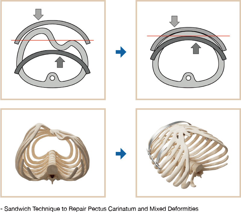 This device consists of pectus bar and stabilizer to lift the sternum upwards to lessen the