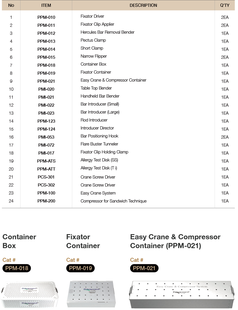 Park’s Pectus System includes unique and special devices like the Claw Fixator and Hinge Plate used